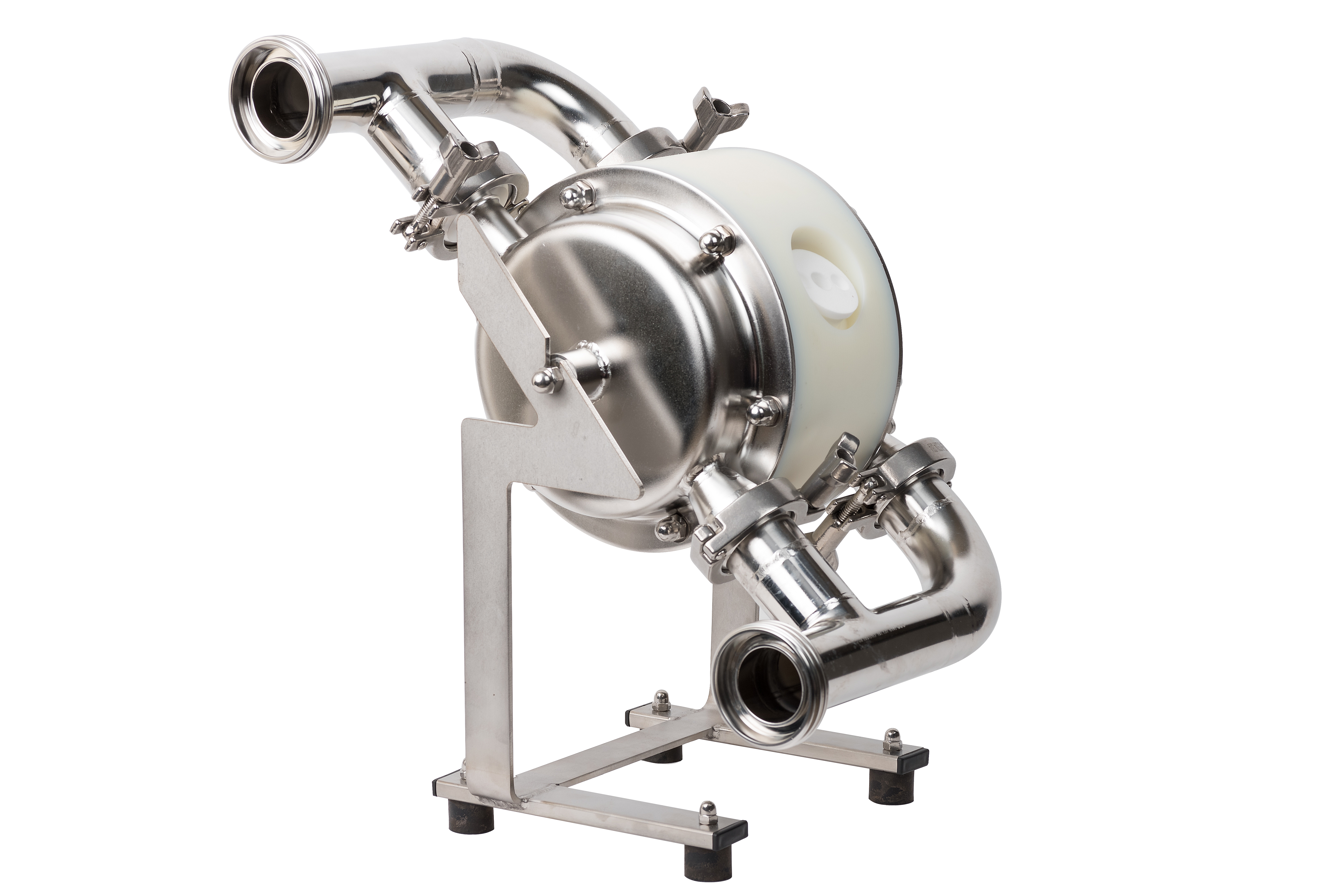 - El nuevo diseño Hi-Clean de Verderair limita el número de conexiones Tri-clamp que entra en contacto con el fluido, lo que simplifica el desmontaje y montaje de la bomba y limita el riesgo de contaminación